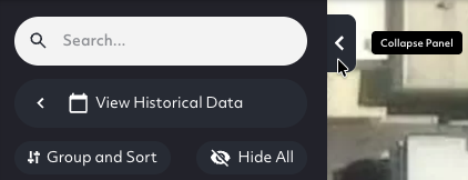 If no asset is selected, this panel will be hidden by default. Click on an asset to bring it into view. For greater screen real-estate, it can be hidden for a selected asset by clicking the small transparent tab at the top-left of the map.